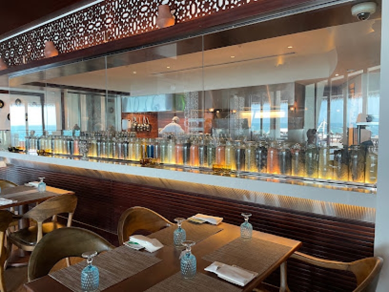 Al Nahham enjoys a dramatic setting perched at water's edge. An iconic thatched pavilion leads through to a stunning deck with views across the Arabian Gulf. Explore local flavours and spices with a selection of mezze from around the region. End your evening with a selection of shishas out under the stars.