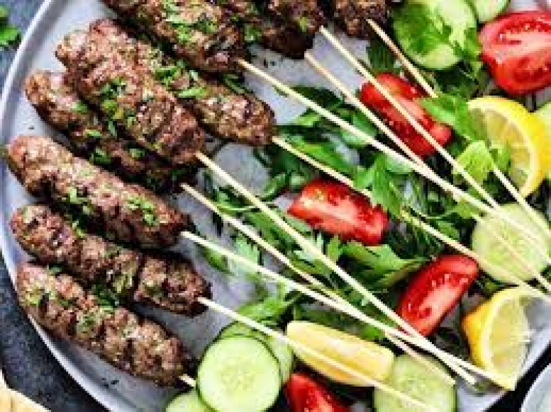 LAMB-BEEF KOFKA SKEWERS WITH TZATZIK